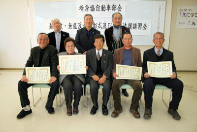 無事故無違反証明書を取り寄せて埼身協事務局に申請、5年刻みでの表彰状を授与し功績を称えています。